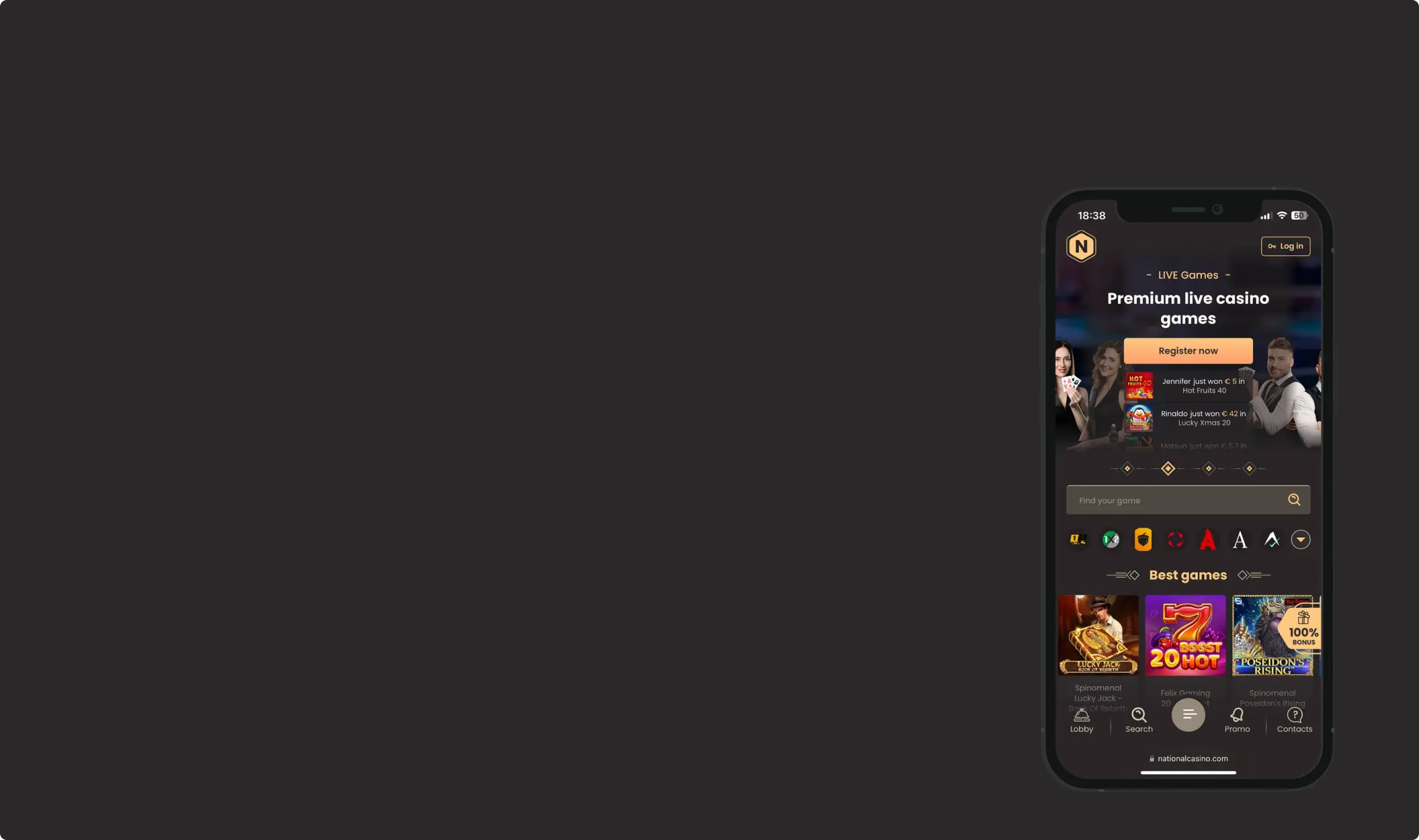 Με το National Casino App, το καζίνο σας ακολουθεί παντού! Παίξτε τα αγαπημένα σας φρουτάκια, δοκιμάστε την τύχη σας στα live τραπέζια ή κυνηγήστε μεγάλα τζάκποτ όπου κι αν βρισκεστε – στο σπίτι, στη δουλειά, στο ταξίδι ή στις διακοπές. Η εφαρμογή εξασφαλίζει πως δεν θα χάσετε ποτέ κάποιο αποκλειστικό μπόνους, τουρνουά ή νέα κυκλοφορία.